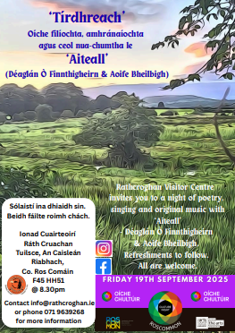 Rathcroghan Visitor Centre Tulsk,, Co. Roscommon, Roscommon, IrelandCuntas le léaráidí ar mhóreipic na hÉireann, ‘An Táin Bó Cuailnge’. Ceisteanna agus plé le saineolaí ar an tréimhse, Colmán Ó Raghallaigh. Ceol agus sóláistí ina dhiaidh sin. (Tá an imeacht seo saor in aisce, ach le do thoil, cuir ticéad in áirithe roimh ré.) An account of the great Irish epic, ‘An Táin Bó